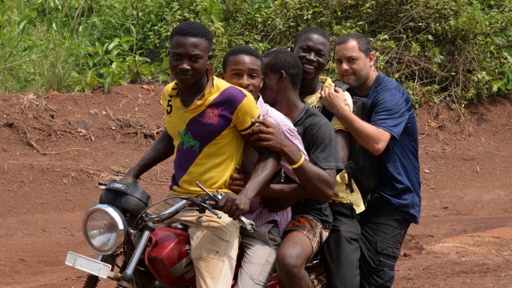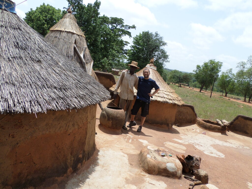 Rumbo hacia el norte compartimos el asiento delantero de un Nissan cuatro personas. El chofer conducía arrinconado en la esquina de su asiento y apenas podía manejar haciendo malabares con los pedales y para llegar a la palanca de cambio. Atrás iban otros cuatro adultos con cuatro niños alzados y dos bebés que los metieron por la ventana. Éramos en total catorce personas en aquel coche durante cinco horas que duró el trayecto hasta Djougou un pueblo en donde cambié de transporte para poder llegar a la ciudad de Natitingou mi punto de referencia para atravesar la región de los Somba como se llama a los habitantes que viven a ambos lados de la frontera entre Benin y Togo en los alrededores de la cadena montañosa de Atakora. Así con mi sacrificio llegué a Natitingou una ciudad ubicada en un semi-valle al noroeste del país.