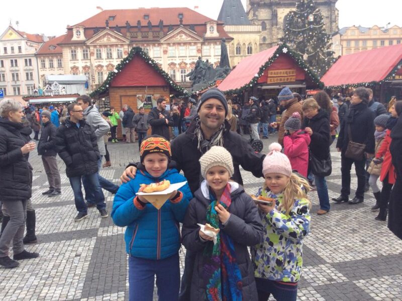 En Praga se bebía mucha cerveza, vino, chocolate caliente y se comían salchichas. Como un niño me chupaba los dedos cuando probé por primera vez el Trdelník un rollo de masa dulce azucarado que asaban lentamente en una barra giratoria de madera.