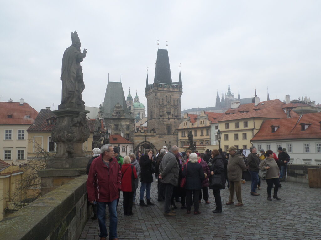 Encontré a mi llegada al hostel un lugar lleno de mochileros europeos donde me dieron de acomodo una litera en un cuarto de ocho camas. Muy cerca de donde me encontraba al lado derecho» en el este de la ciudad» se halla la ciudad vieja que conecta con el barrio de Mala Strada donde vivía en la intersección del icónico puente de Carlos iv. Flanqueado en ambos lados por sus torres lo recuerdo bien porque todos los días atravesaba sus dos puertas salvando la distancia entre ambas. Por aquella calle empedrada de tonos grisáceos y luz diáfana rodeado de estatuas de santos patrones escuchaba buena música que salía de los violines y violonchelos de los artistas que allí se congregaban.